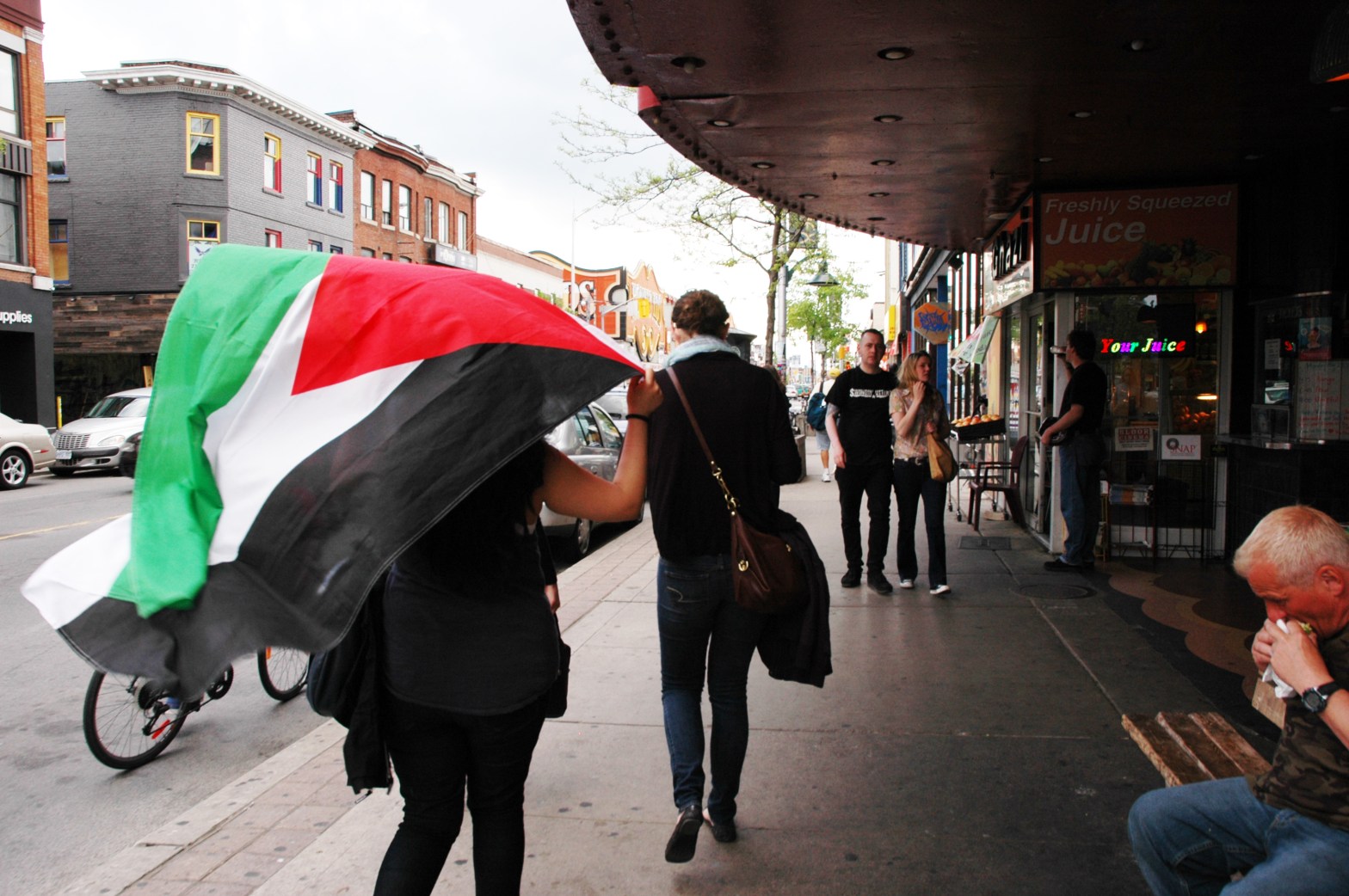 From Turtle Island to Palestine: Occupation is a Crime is a photo essay project inspired by the international protests on May 15th, 2011, the 63rd anniversary of the Nakba, (Arabic for catastrophe). It is a date to commemorate the violent displacement of Palestinian people to make way for the new Israeli state. The goal of the project is to create an international message of solidarity with the Palestinian people that continue to rally and resist Israeli occupation. In every photograph the Palestinian flag is being held up in front of landmarks or popular spots in Toronto, demonstrating the support for Palestinian people that exists in the city.